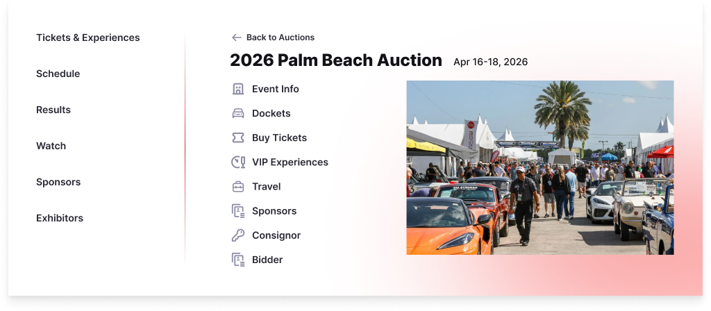 The Auction Details page became one of the most critical destinations on the site. DodgeUX designed it as a comprehensive hub for each event, bringing together auction dates, schedules, and the vehicle docket alongside key actions such as purchasing tickets, accessing VIP experiences, and finding travel and sponsor information. This consolidation ensured users could understand an auction and take action without navigating across disconnected pages.