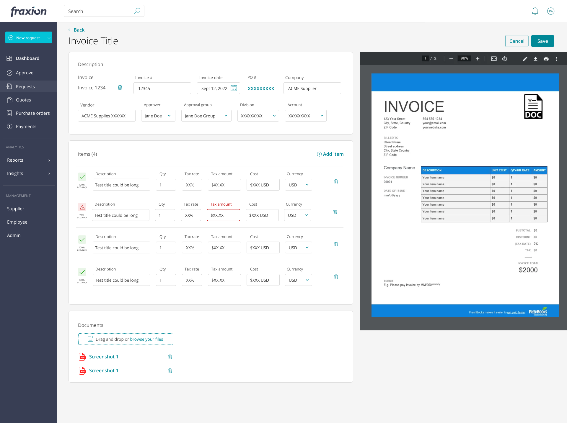 New submission and approval experiences simplified how users created, managed, and approved requests. Additional enhancements supported invoice data extraction and payment workflows, improving operational efficiency across the procurement lifecycle.