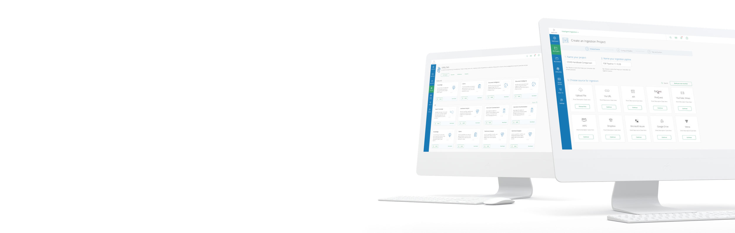 One of the most significant decisions was defining the platform’s core workflow model. Rather than presenting AI capabilities as isolated features, we structured the experience around projects, ingestion pipelines, and utility sets — translating technical architecture into product concepts enterprise users could understand.