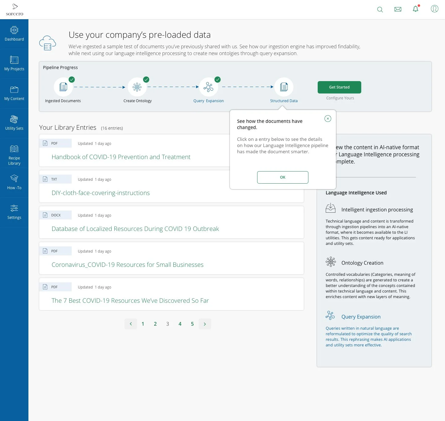 As Sorcero’s first product and UX hire, DodgeUX’s founder joined as Principal Lead Product Designer to define and shape the company’s initial platform experience